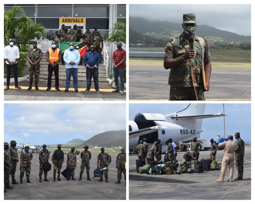The 10 member contingent comprising of officers from Royal St. Christopher and Nevis Police Force (RSCNPF) and Soldiers from the St. Kitts and Nevis Defence Force (SKNDF), that left the Federation for a peacekeeping mission in St. Vincent and the Grenadines, returned to SKN on Sunday June 20th.