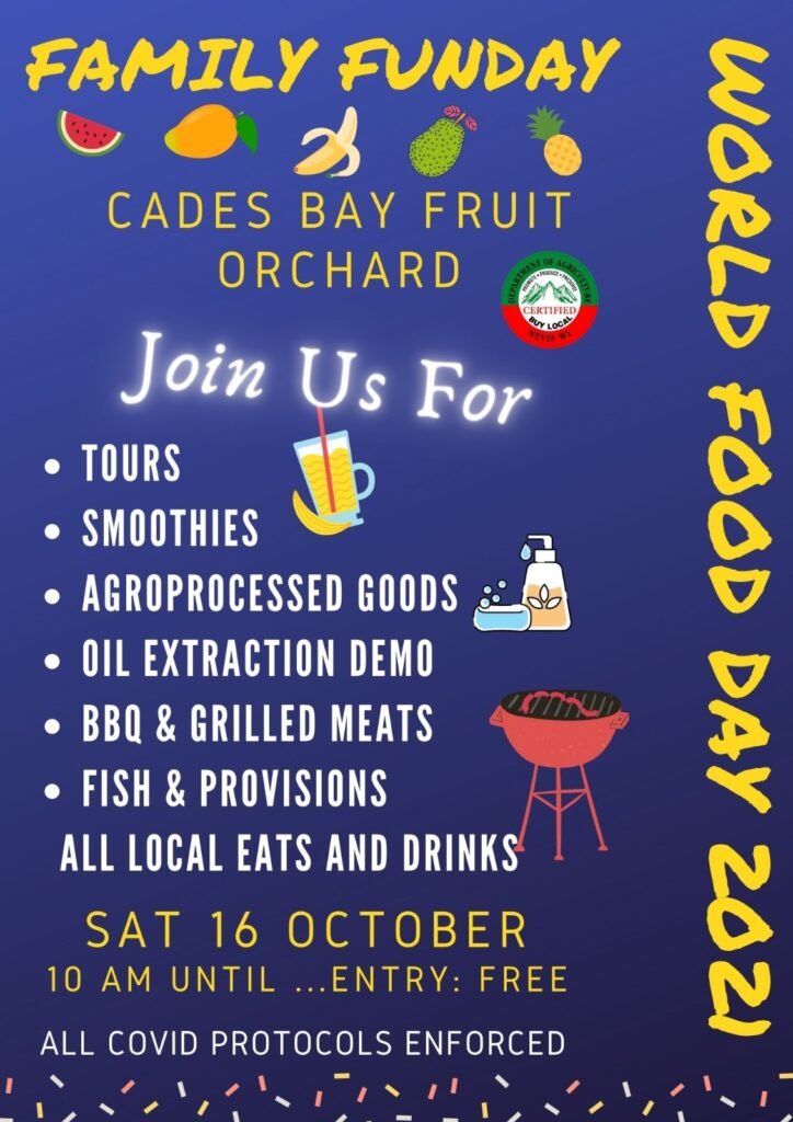 In Commemoration of World Food Day, Nevis’ Ministry of Agriculture held an event dubbed “Family Fun Day on the Farm” at the Cades Bay Fruit Orchard on Saturday, October 16th 2021.