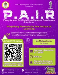 Parents are encouraged to register via the circulating flyer and QR code which can be found on the Facebook page @Department of Youth – Nevis.