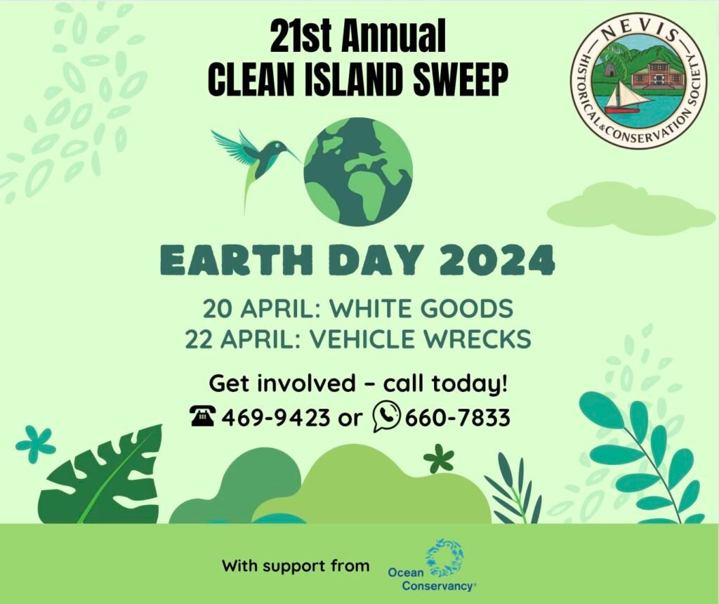 The Nevis Historical and Conversation Society will hold its 21st annual Earth Day ‘Clean Island Sweep’.