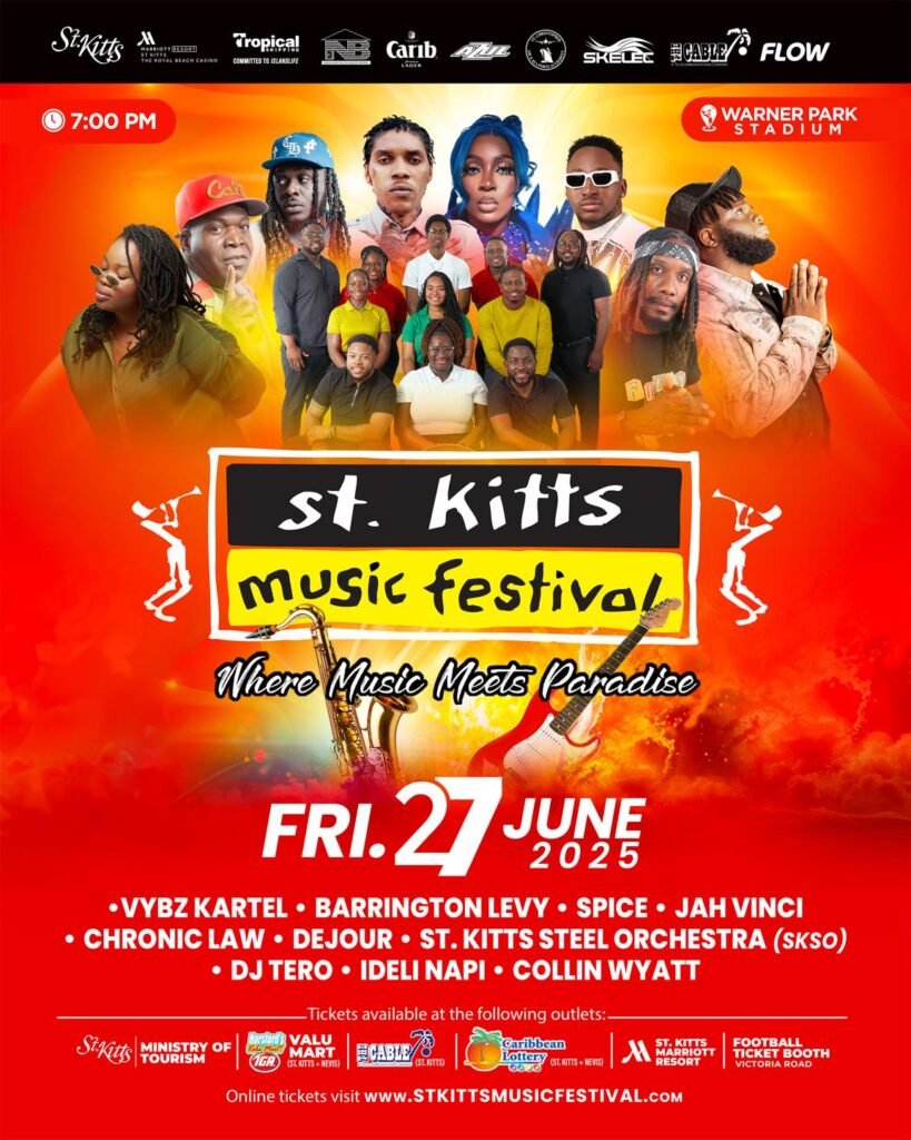 This evening’s lineup will include Barrington Levy, Spice, Jah Vinci, Chronic Law, Dejour, St. Kitts Orchestra, DJ Teri, Ideli Napi, Collin Wyatt and Vybz Kartel.