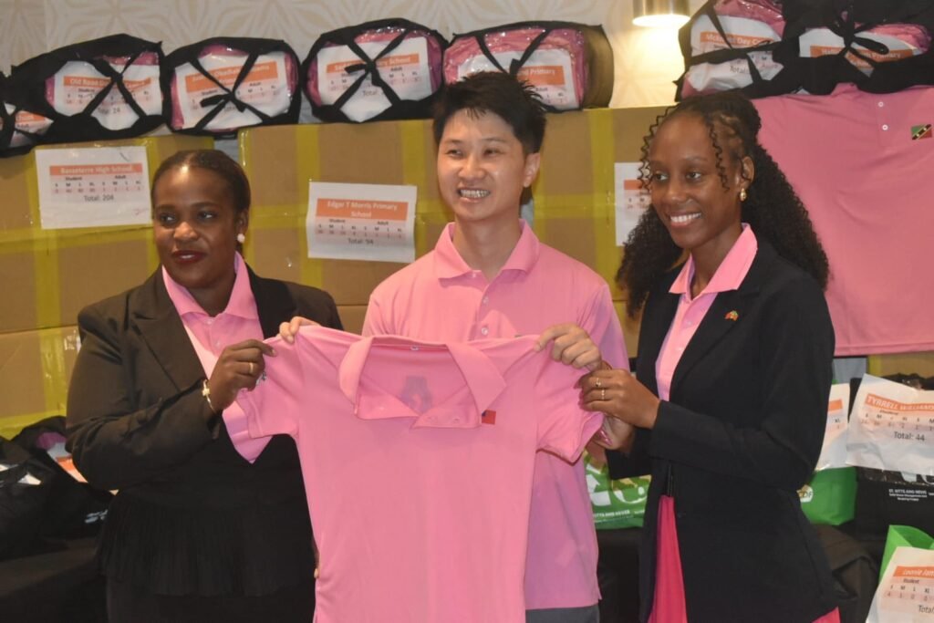 Hon. Jahnel Nisbett. Regarding the matter of creating things of value from thrash, the Taiwan Technical Mission through Secretary Billy Chung handed over 1600 shirts made from recyclable materials collected from the federation to the Hon Jahnel Nisbett and the Hon. Dr. Joyelle Clarke, Federal Minister of Climate Action, Environment, et. al.