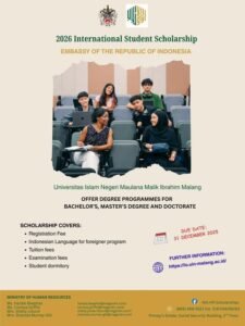 The Human Resources Department of the Nevis Island Administration (NIA) invites individuals to apply to the 2026 International Student Scholarship at Universitas Islam Negeri Maulana Malik Ibrahim Malang, located in Indonesia.