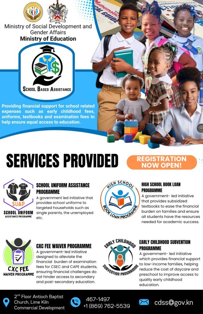 The Ministry of Social Development and Gender Affairs and Ministry of Education in St. Kitts are working together to soon launch a new School Based Assistance Programme.