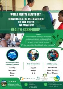 In recognition of World Mental Health Day, the Behavioural Health and Wellness Centre at Cedar Grove, Prospect, Nevis, will hold
