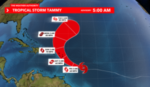 Residents are asked to prepare for Tropical Storm Tammy; hurricane status expected before passing island chain