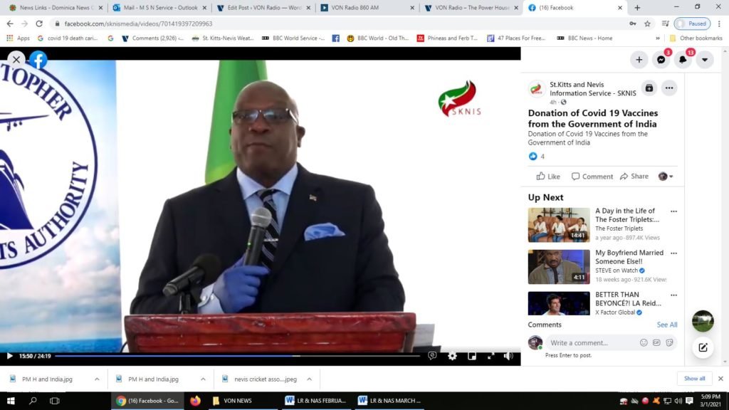 Prime Minster, Dr. The Hon Timothy Harris, commented on the vaccine donation from the Republic of India, following its’ arrival on March 1st 2021.