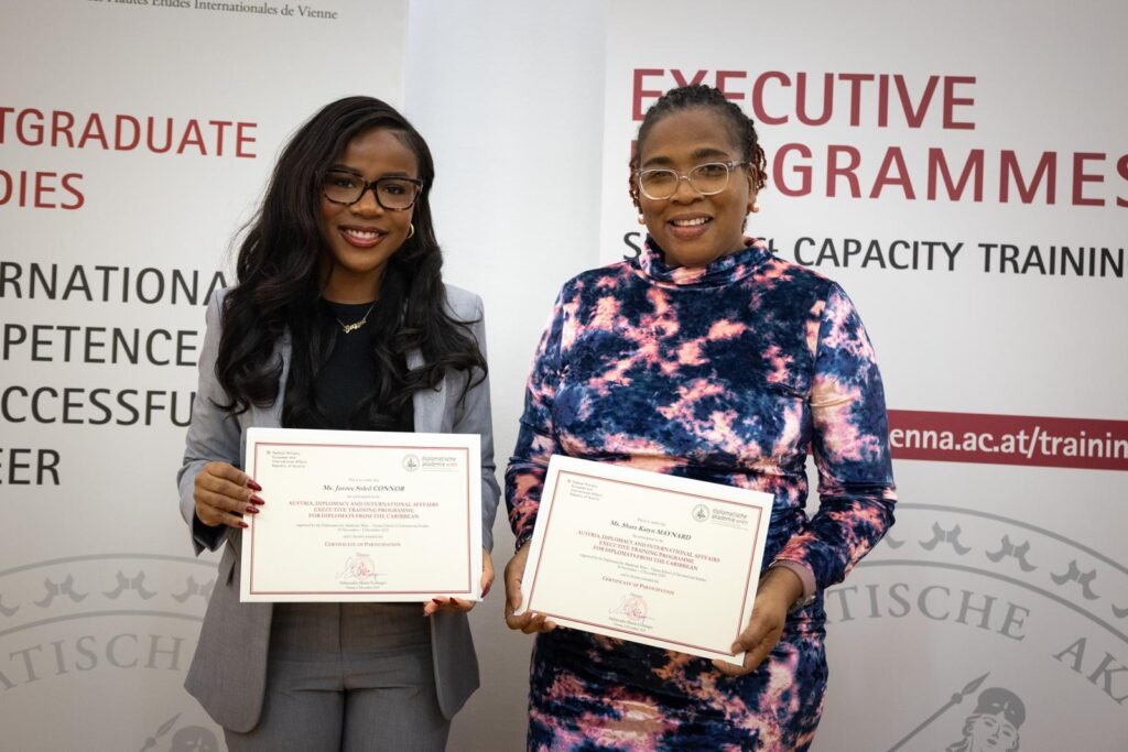 Chief of Protocol, Ms. Shara Maynard, and Foreign Service Officer, Ms. Jazzee Connor, participated in the Executive Training Programme in Austria, Diplomacy and International Affairs for Caribbean Diplomats. The two-week programme was held from November 24th to December 5th, 2025, at the Diplomatische Akademie Wien, also known as the Vienna School of International Studies.