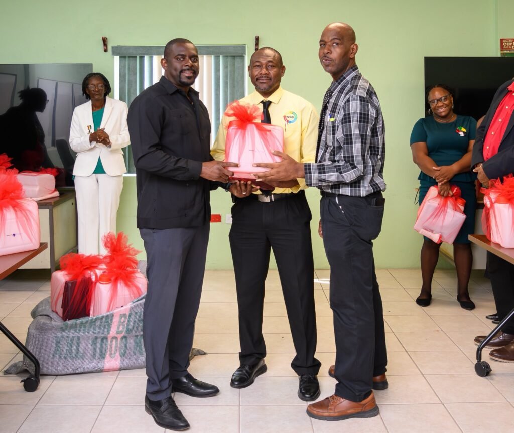 The donation was received by Mr. Livingston Pemberton, Director of St. Kitts Disaster Management and Mr. Brian Dyer, Director of Nevis Disaster Management, who thanked the Minister and noted that hurricane preparedness requires everyone working together.