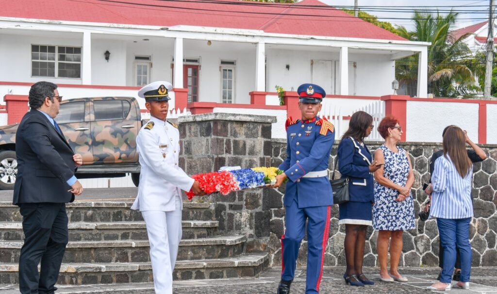 St. Kitts and Nevis Defence Force facilitated officers and cadets of the Venezuelan Training School Ship, Liberator Simon Bolívar for a wreath-laying ceremony at the Cenotaph (War Memorial) on Wednesday, April 26th, to pay homage to St. Kitts and Nevis and Anguilla soldiers killed in World Wars I and II.